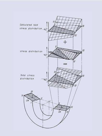 DIN2093標準詳細規(guī)定了盤片厚度由t減到t’的情況。A、B系列彈簧t’與t之間的平均厚度減薄比為0.938,C系列彈簧t’與t之間的平均厚度比為0.995。由于支撐面的存在,已不必對橫截面邊緣I…IV角點的載荷應力進行計算。因此計算應力或多或少高于用更為精確的方法計算的角部實際應力。由于這些數(shù)值只是一些名義值,因此偏差并不重要。