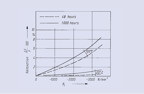 熱強(qiáng)壓彈簧表面殘余力與冷強(qiáng)壓彈簧基本相同,但其塑性變形區(qū)相比冷強(qiáng)壓彈簧來(lái)講,向材料內(nèi)部延伸的更深,因而其表面殘余應(yīng)力在深度方向的分布也更平緩,旨強(qiáng)壓處理時(shí)的載荷損失也就比冷強(qiáng)壓彈簧要小。冷強(qiáng)壓彈簧容許松弛量(見(jiàn)下圖)。工作溫度高于100℃的情況,請(qǐng)與Mubea公司聯(lián)系。